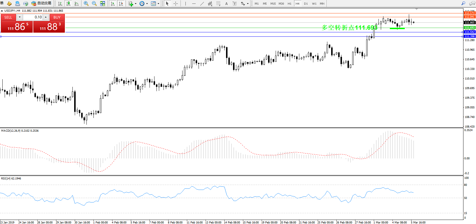 交易策略:111.693上方看涨,目标112.041112.173