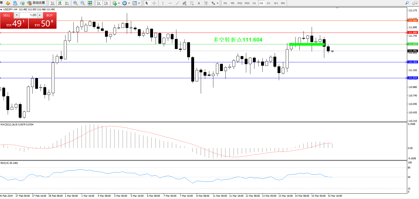 交易策略:111.604下方看跌,目标111.303111.033