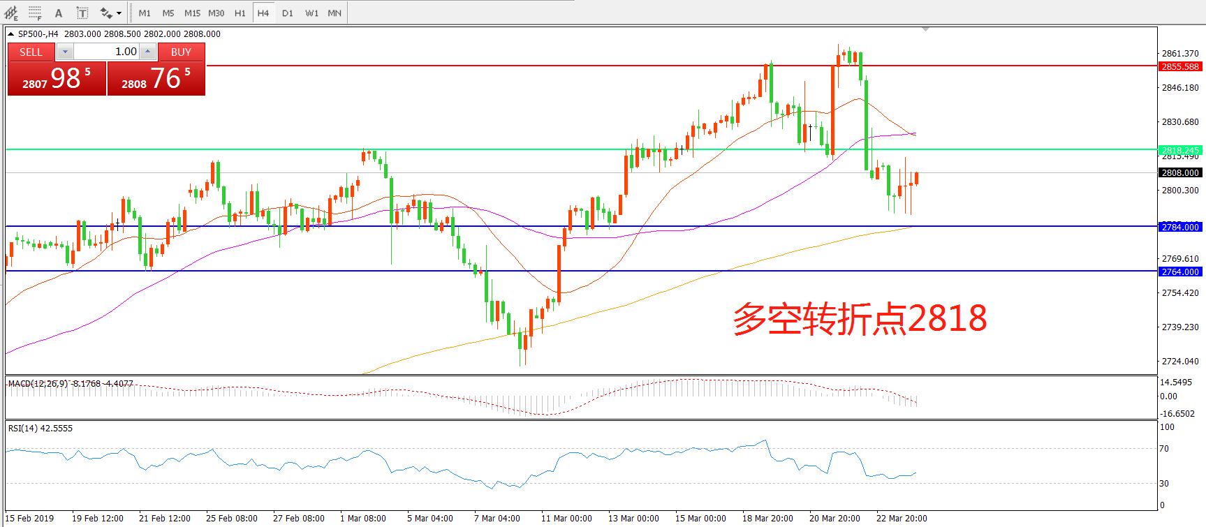 交易策略:在2818之下看跌,目标2784 2764