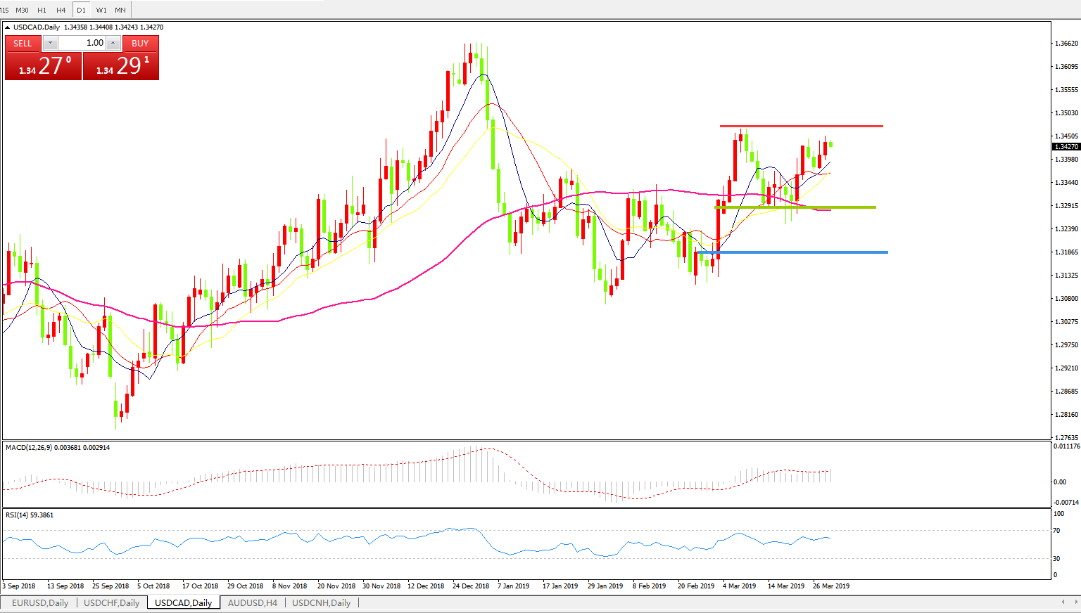 美元兑加元USDCAD 日线图: