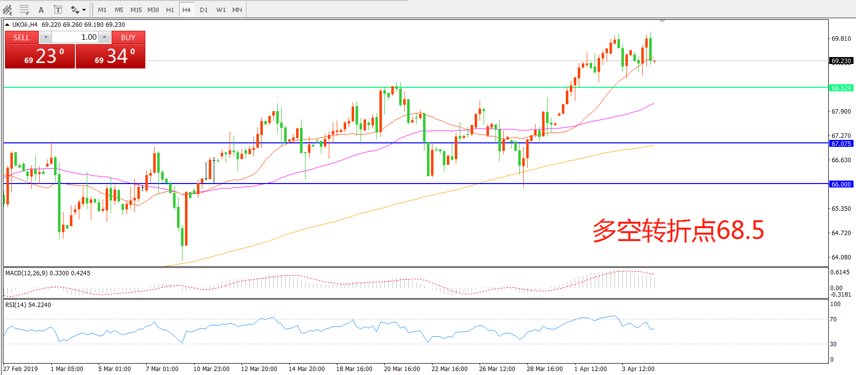 多空转折点:68.50