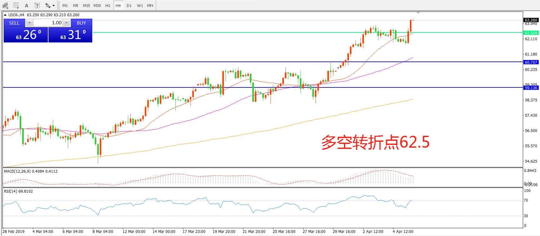 多空转折点:62.50