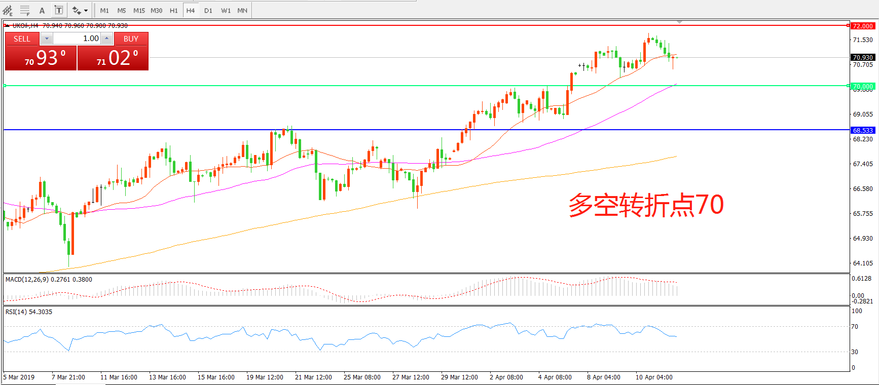 交易策略:在70.00之上看涨,目标72.00 74.50