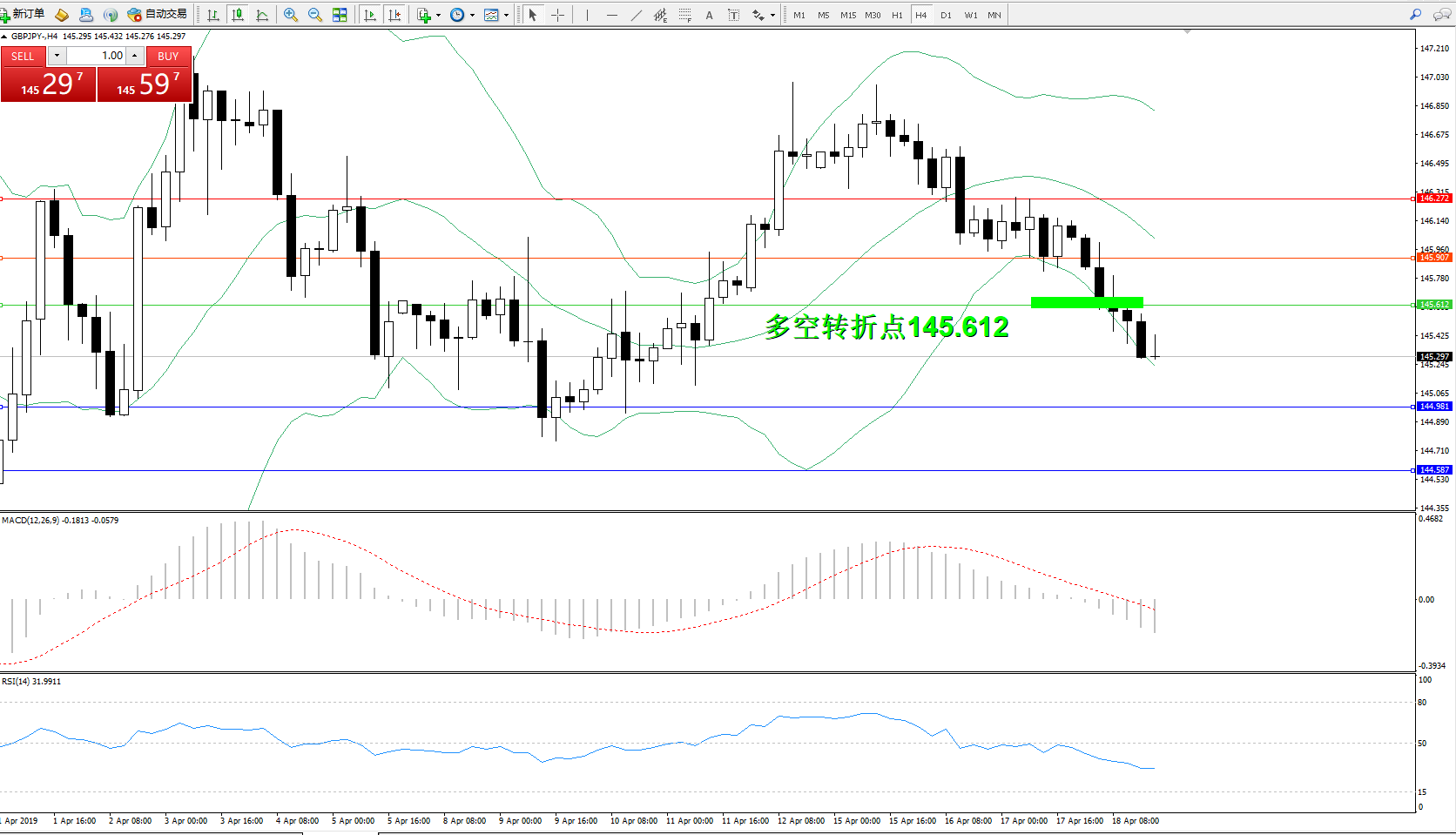 交易策略:145.612下方看跌,目标144.981144.587