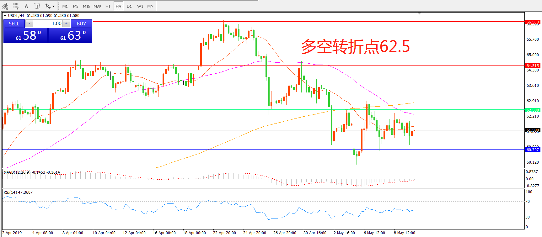 多空转折点:62.50