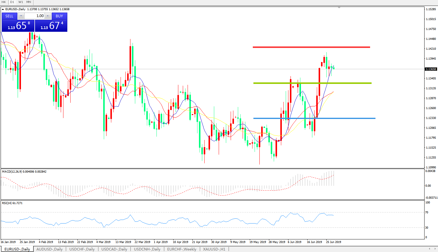 技术面简析:日图均线呈有序多头排列K线横向整理买盘支撑较强MACD在0轴上方运行且动能蓄势待发,RSI维持高位整理,预计汇价短期窄幅整理修正后将进一步上行。
