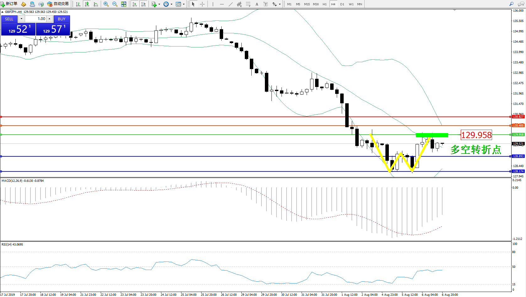 交易策略:129.958下方看跌,目标128.893128.174