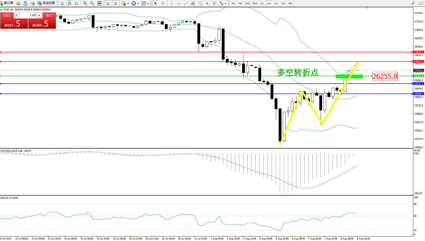 道琼斯指数8月8日(周四)收盘上涨371.50点,涨幅1.43%,报26378.53点。美国至8月3日当周初请失业金人数意外录得下滑,暗示尽管经济增速放缓,劳动力市场维持强劲。而接下来数周内,贸易问题将受到关注,因其导致经济前景黯淡,金融市场动荡,且正在蔓延到劳动力市场。由于贸易问题,金融市场已经完全计价美联储将在下个月再次降息的可能性,且对降息幅度达50个基点的预期也在上升。尽管近期美联储在年内再度降息50基点的预期升温,但并不能撼动美元指数的上行趋势。
