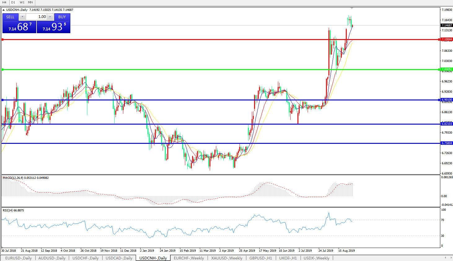 技术面简析:日图均线呈有序多头排列,汇价走高后维持窄幅整理态势,MACD运行在0轴上方且动能有再度放量迹象,RSI下修离开超买区域,预计短期汇价将维持攻势,重点关注7.20-7.30区间的压制;中美贸易战后续进展决定汇价中期走势。