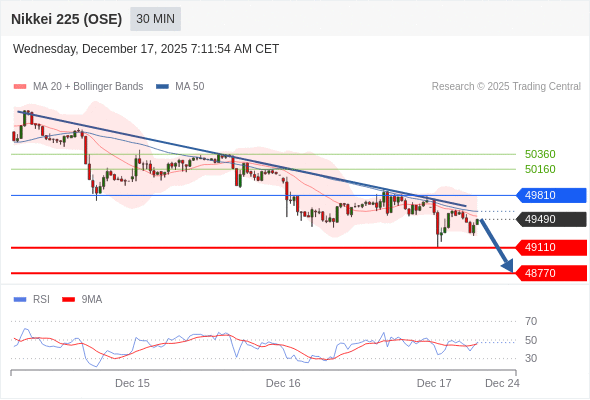 在 49810 之下,看跌,目标价位为 49110 ,然后为 48770 。