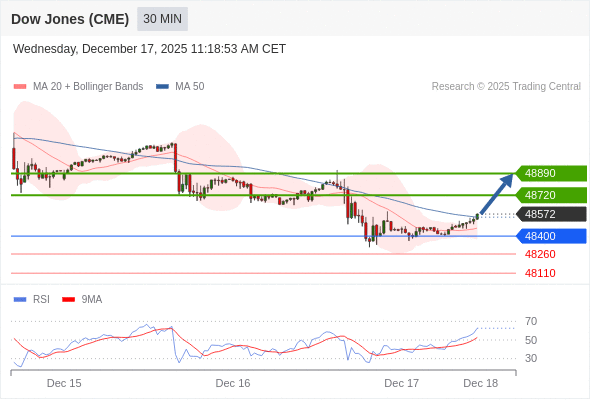 在 48400 之上,看涨,目标价位为 48720 ,然后为 48890 。