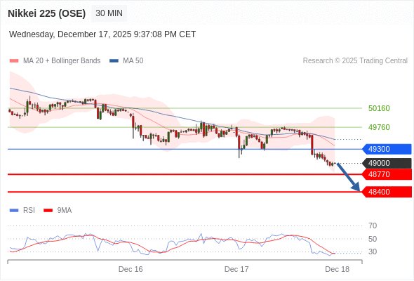 在 49300 之下,看跌,目标价位为 48770 ,然后为 48400 。