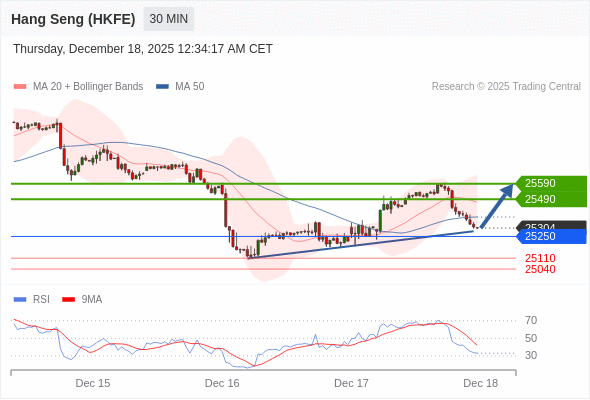 在 25250 之上,看涨,目标价位为 25490 ,然后为 25590 。