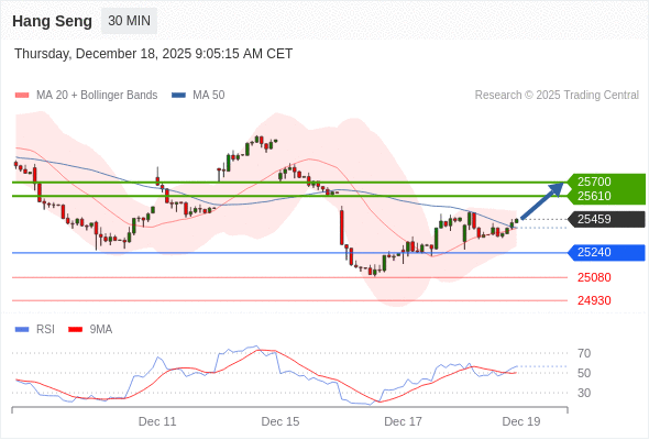 在 25240 之上,看涨,目标价位为 25610 ,然后为 25700 。