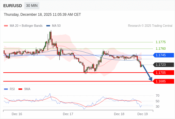 在 1.1745 之下,看跌,目标价位为 1.1705 ,然后为 1.1685 。