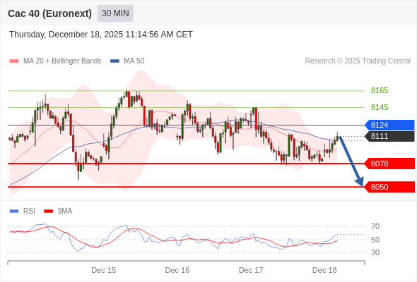 在 8124 之下,看跌,目标价位为 8078 ,然后为 8050 。