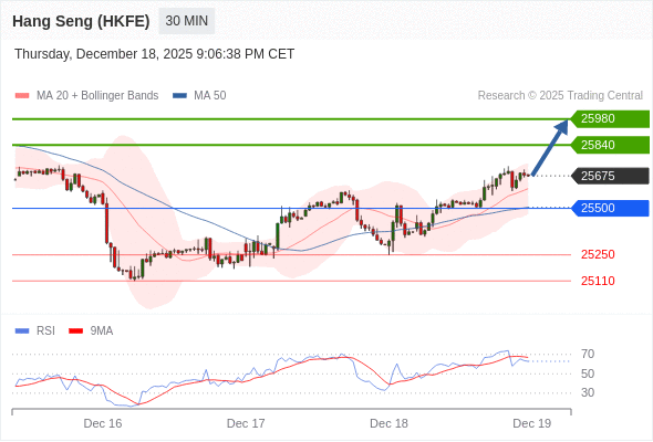 在 25500 之上,看涨,目标价位为 25840 ,然后为 25980 。