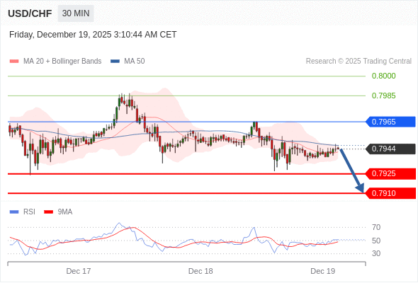 在 0.7965 之下,看跌,目标价位为 0.7925 ,然后为 0.7910 。