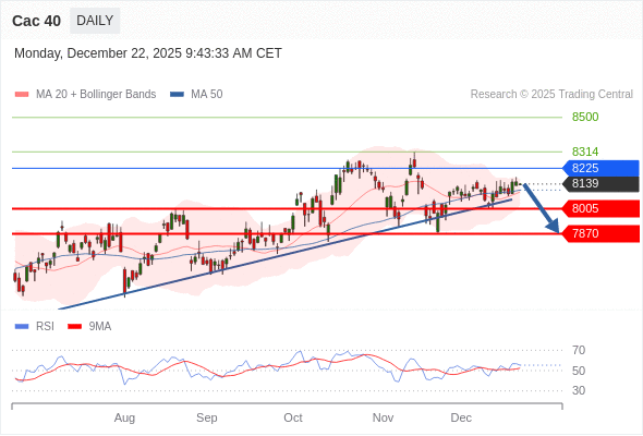 在 8225 之下,看跌,目标价位为 8005 ,然后为 7870 。