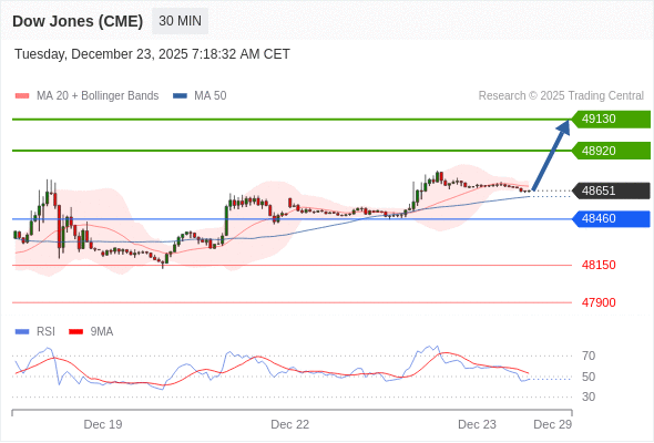 在 48460 之上,看涨,目标价位为 48920 ,然后为 49130 。