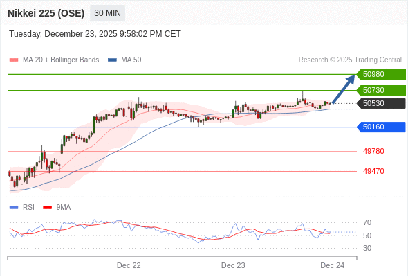 在 50160 之上,看涨,目标价位为 50730 ,然后为 50980 。