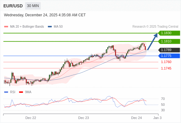 在 1.1775 之上,看涨,目标价位为 1.1810 ,然后为 1.1830 。
