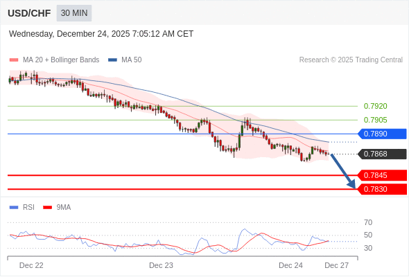 在 0.7890 之下,看跌,目标价位为 0.7845 ,然后为 0.7830 。