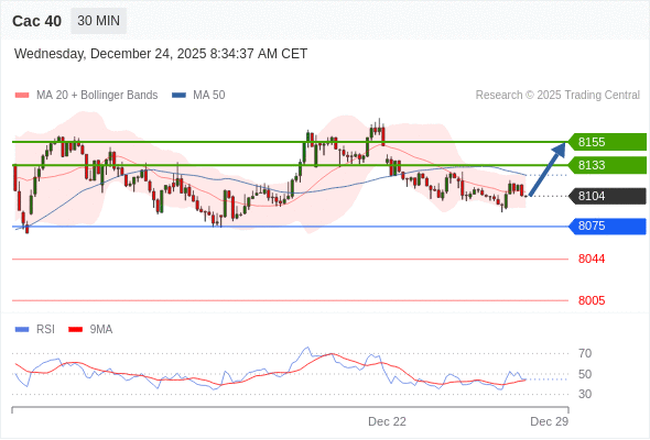 在 8075 之上,看涨,目标价位为 8133 ,然后为 8155 。