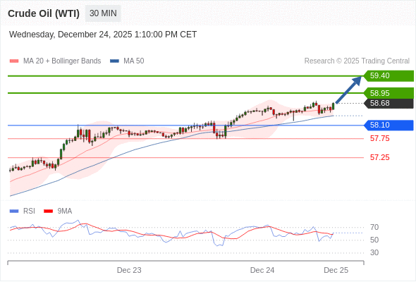 在 58.10 之上,看涨,目标价位为 58.95 ,然后为 59.40 。