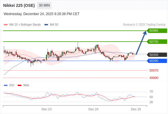 在 50290 之上,看涨,目标价位为 50730 ,然后为 50980 。