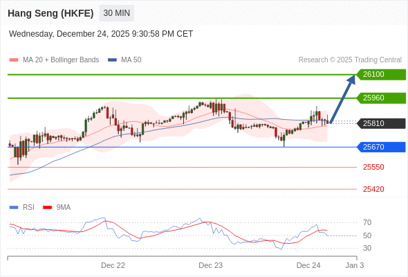 在 25670 之上,看涨,目标价位为 25960 ,然后为 26100 。