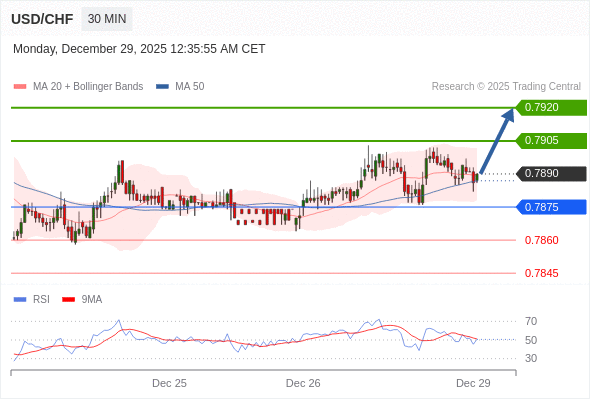 在 0.7875 之上,看涨,目标价位为 0.7905 ,然后为 0.7920 。