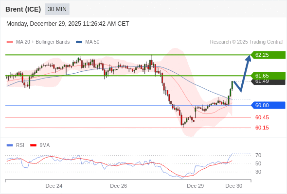 在 60.80 之上,看涨,目标价位为 61.65 ,然后为 62.25 。