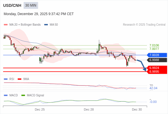 交易策略: 看跌,在 7.0028 之下。
