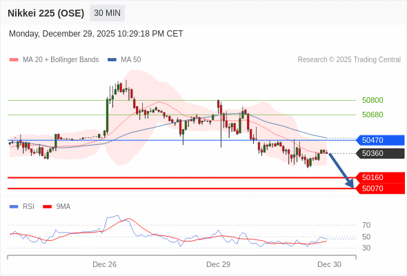 在 50470 之下,看跌,目标价位为 50160 ,然后为 50070 。