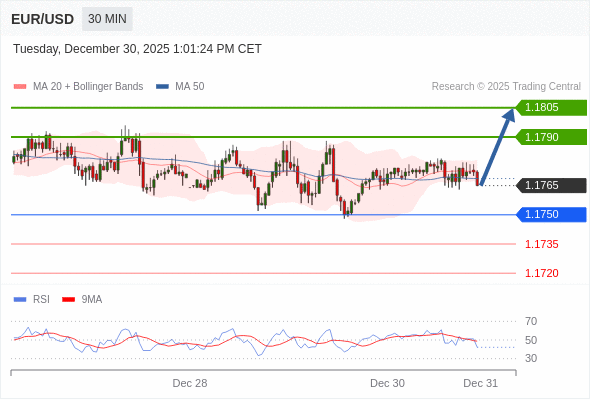 在 1.1750 之上,看涨,目标价位为 1.1790 ,然后为 1.1805 。