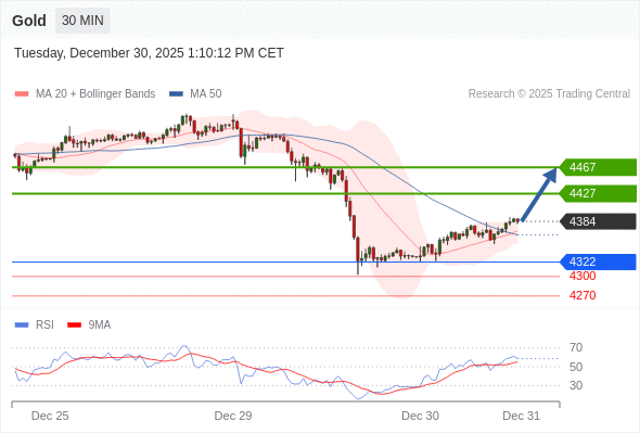 在 4322 之上,看涨,目标价位为 4427 ,然后为 4467 。