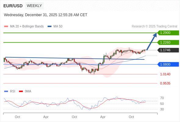 欧元/美元 中期: 进一步上涨。