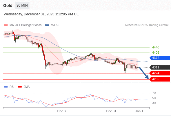 在 4372 之下,看跌,目标价位为 4274 ,然后为 4235 。