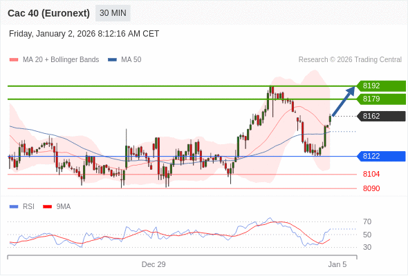 在 8122 之上,看涨,目标价位为 8179 ,然后为 8192 。