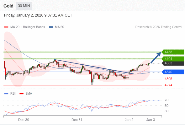 在 4340 之上,看涨,目标价位为 4404 ,然后为 4438 。