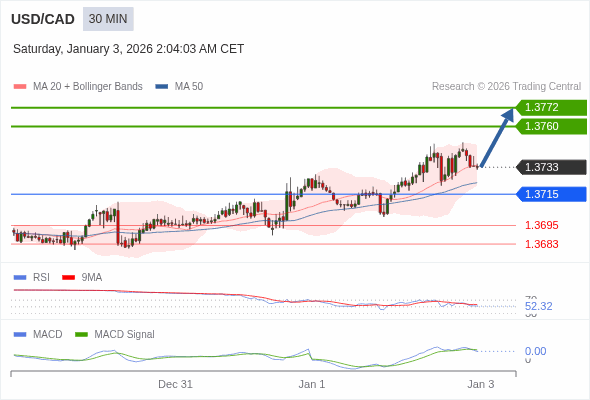 交易策略: 看涨,当 1.3715 为支撑位,目标定在1.3772。