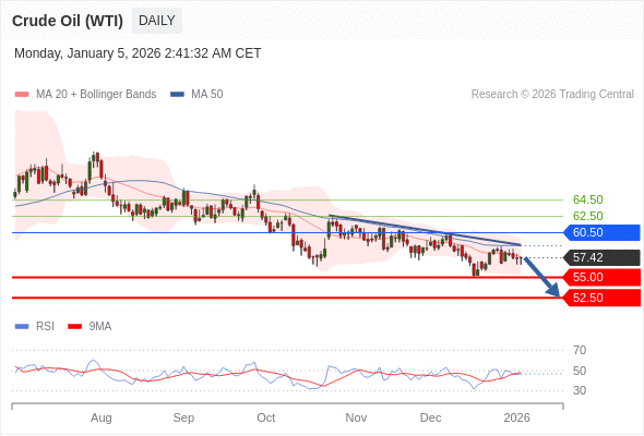 交易策略: 在 60.50 之下,看跌,目标价位为 55.00 ,然后为 52.50 。