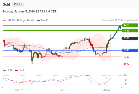 在 4340 之上,看涨,目标价位为 4435 ,然后为 4460 。