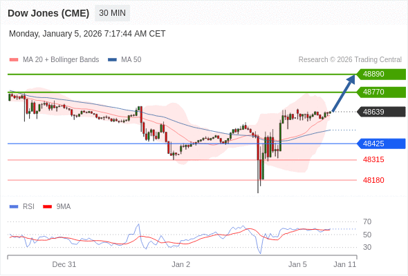 在 48425 之上,看涨,目标价位为 48770 ,然后为 48890 。
