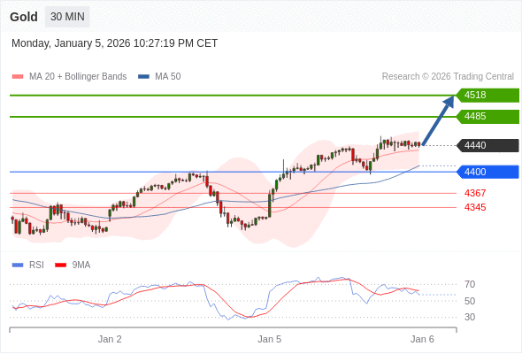 在 4400 之上,看涨,目标价位为 4485 ,然后为 4518 。