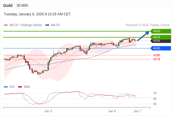 交易策略: 在 4426 之上,看涨,目标价位为 4474 ,然后为 4500 。