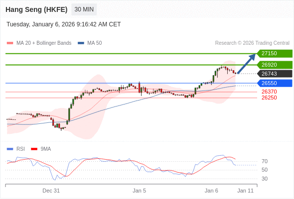 在 26550 之上,看涨,目标价位为 26920 ,然后为 27150 。