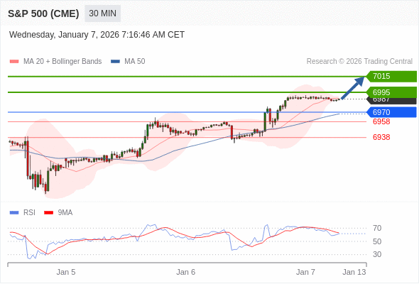 在 6970 之上,看涨,目标价位为 6995 ,然后为 7015 。
