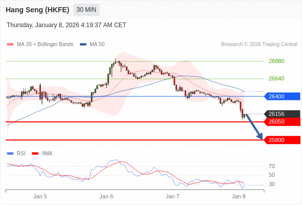 在 26400 之下,看跌,目标价位为 26050 ,然后为 25800 。